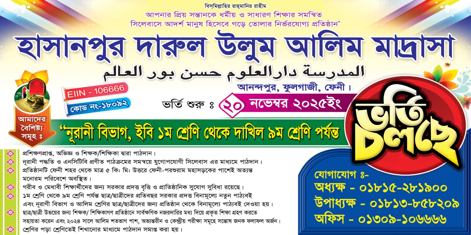 হাসানপুর দারুল উলুম আলিম মাদ্রাসায় আলিম ১ম বর্ষে ভর্তি চলছে।